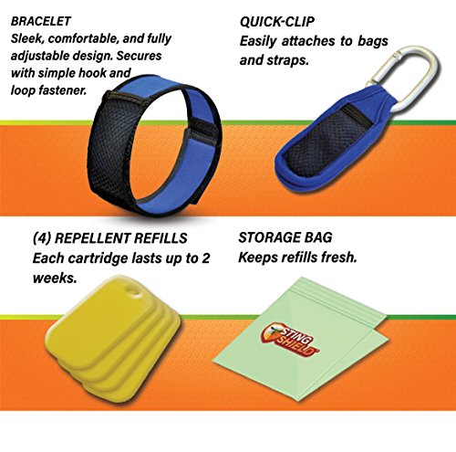 -. Brand : As Seen On TV -. Color : Blue -. EAN : 0852604006106 -. Feature : POWERFUL & ALL NATURAL REPELENT - Harness the natural protective power of Sting ShieldTM to ward of pesky mosquitoes and disease carrying insects. Great to use while walking, hiking, fishing, grilling, gardening, golfing, and camping or any time you want to enjoy insect-free outdoor activities. / DURABLE & LONG LASTING - Simply insert a refill cartridge into the mesh sleeve and it will give you up to 2 Weeks of Reusable Protection! Made of flexible and comfortable materials the Sting ShieldTM Kit Includes a Wristband, Quick-Clip, 4 refill cartridges & a Scent Saving Storage Bag to keep the cartridges fresh. / NO SPRAY & DEET-FREE - Say goodbye to harmful and annoying sprays and lotions. Sting Shield'sTM uniquely formulated blend of Lavender, Citronella, Peppermint and Geranium is the perfect combination of eco-friendly powerful mosquito repelling ingredients designed to keep you safe and bite-free. / EASY TO USE & FITS ALL SIZES - Sting ShieldTM adjusts to comfortably fit on your wrist or ankle, and the bonus Quick Clips can attach to your bag or belt for 2X the protection. Wristband and Quick Clip are made of soft neoprene rubber and attaches in seconds with the adjustable hook and loop strap. / Includes: Wrist Band, Quick-Clip, 4 Repellent Cartridges, Storage Bag -. Label : Trendstar -. Manufacturer : Trendstar -. Model : SSG1-MC12/6 -. MPN : SSG1-MC12/6 -. PackageQuantity : 1 -. PartNumber : SSG1-MC12/6 -. ProductGroup : Lawn & Patio -. ProductTypeName : OUTDOOR_LIVING -. Publisher : Trendstar -. Size : One Size -. Studio : Trendstar -. Title : Sting ShieldTM - Best Mosquito Repellent Bracelet & Quick Clip - Includes 4 Natural Ingredient Refill Cartridges for up to 8 Weeks of DEET Free Protection -. UPC : 852604006106