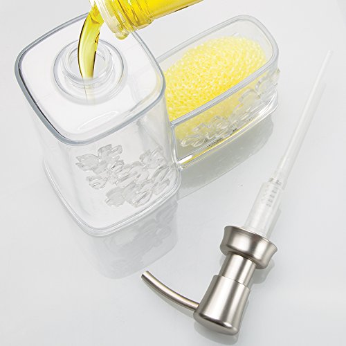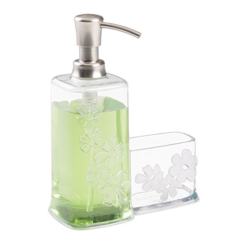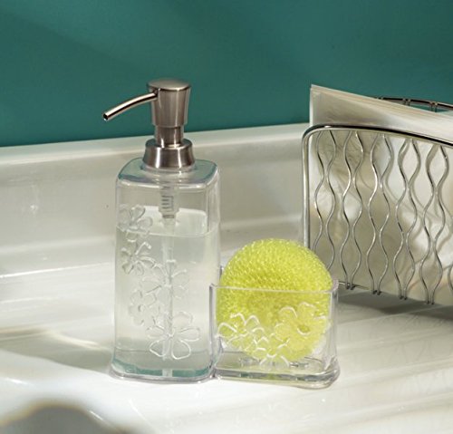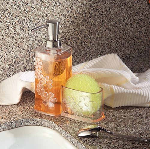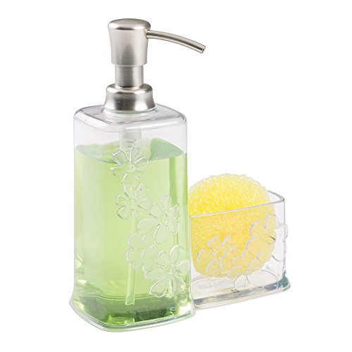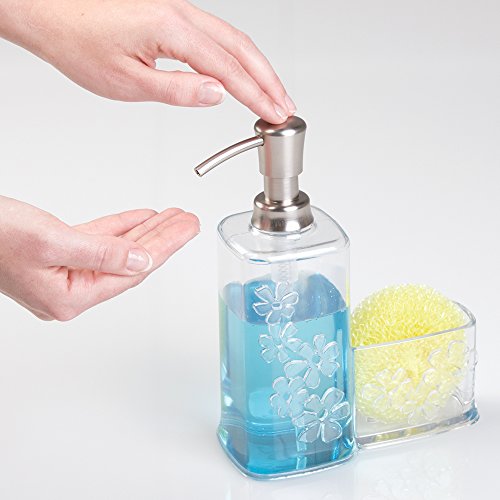 mDesign Blooms Kitchen Sink Soap Dispenser Pump and Sponge Scouring Pad Holder - Clear