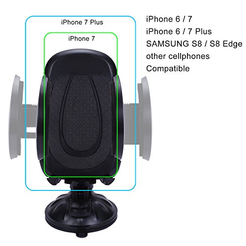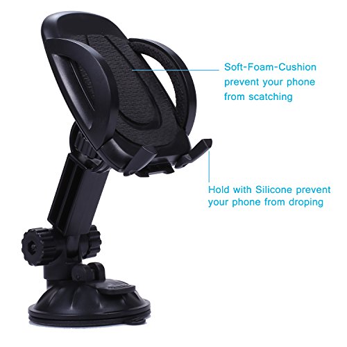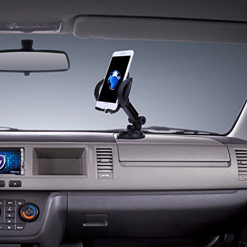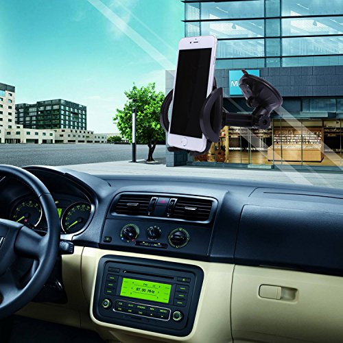 Car Mount, Car Mount Holder Cradle for iPhone 6 Plus Samsung Galaxy s6 Smartphones Car phone holder with 360° rotating support holder Mobile Phone with 180 Degree Adjustable Arm, (Black)