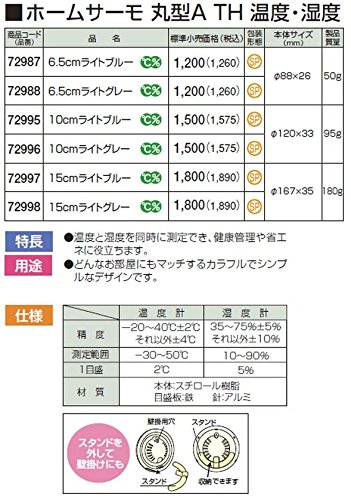 -. Title : シンワ測定 72997 ホームサーモ 丸型A TH 温度・湿度 15cm ライトブルー