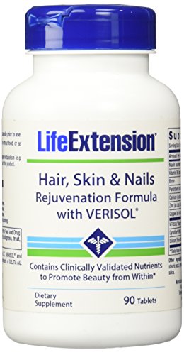 -. Binding : Health and Beauty -. Label : Life Extension -. Manufacturer : Life Extension -. ProductGroup : Health and Beauty -. ProductTypeName : HEALTH_PERSONAL_CARE -. Publisher : Life Extension -. Studio : Life Extension -. Title : Life Extension Hair/Skin and Nail Rejuvenation Formula with Verisol, 90 Count