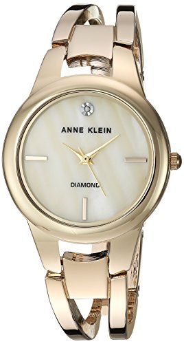 - Mineral crystal lens; cream mother-of-pearl dial with genuine diamond at 12; gold-tone hands and markers