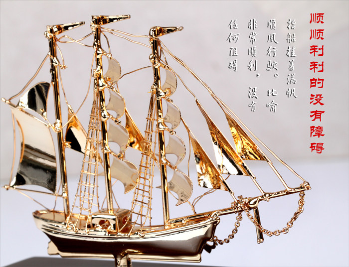 Product features: "Everything is going smoothly."?refers to?the ship?hung?under full sailsailing with the wind.?Metaphor is very?smooth,?without any hindrance.This sentence?means that?every year,?you?are like?the wind?do the same,smoothly?without?obstacles;?everything in?your?own mind,?one step one step?farther high.?This is?to be?the best wish to?you in the future! Product?introduction: Name:?Everything is going smoothly.?gold?sailing. Material:?copper?gold plating Size: small?about?length 17cm* width?8.3cm* high?13cm Medium?length?20cm*?width 10.2cm* height?16cm Size?is about 30.5cm* long?width 10.5cm* height?21.5cm Weight:?Trumpet?about?0.32kg m?about 0.55kg Size?of about 0.98kg?(net) Packing:?packing |