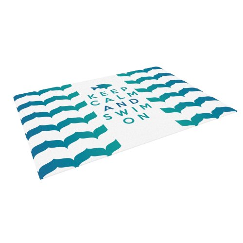Kess InHouse Nicholas Atkinson "Keep Calm and Swim on" Teal White Indoor/Outdoor Floor Mat, 4-Feet by 5-Feet