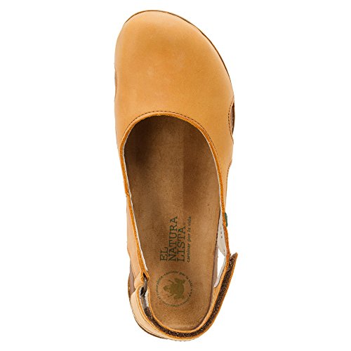 Ballet-inspired style shows off your sophisticated side in the eco-friendly El Naturalista Wakataua N413 slingback skimmer. This casual women's slip-on has a premium leather in a scooped-vamp silhouette with side cutouts for feminine appeal and an adjustable hook-and-loop heel strap to secure the fit. Padding in the partially recycled, anatomically-designed footbed provides all-day comfort, while a traction-ready, recycled rubber sole will provide season after season of lasting wear.Feature