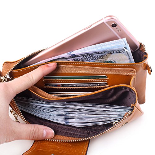 -. Binding : Apparel -. Brand : AINIMOER -. ClothingSize : One Size -. Department : womens -. Feature : [!]We use top grain oil wax cowhide leather for this wallet,oil wax cowhide is made of top layer leather,please check the Product Description,we will offer you a detailed briefing about oil wax cowhide. Snap button and zippered closure are designed for the safety of your properties. / With 3 compartments and 8 card slots in totall.Fits IPhone 6 Plus,Samsung Galaxy S3/S4/S5/S6 and LG G3/G4 in the right compartment. 1 zippered pocket in back. Middle compartment contains 4 card slots. Triple compartments is designed for you to keep your cash, cards and smartphone oraganized well and easy to use. Comes with a long gold-color metal and removable chain shoulder strap multipurpose carry and a detachable wrist strap, so can be used as wristlet wallet. / Features: the wallet appearance concise and atmosphere, powerful at the same time, made of soft leather, and handmade. We have 8 colors,all kind of colors are beautiful and fashinable,you can choose any color you like. Shiny gold-color hardware, heavy duty zipper and detailed contrast stitching brightens up the wallet. Simply designed, perfectly show your personality. / Product dimensions: (L)7.88" x (W)4.13" x (H)1.57" inches ,and the weight is 8.65 ounces / *Attention:AINIMOER is an US registered trademark,unauthorized sale without permission,we will investigated for legal responsibility. -. NumberOfItems : 1 -. PackageQuantity : 1 -. ProductGroup : Apparel -. ProductTypeName : ACCESSORY -. Size : One Size -. Title : AINIMOER Women's Large Capacity Purse Genuine Leather Wristlet Wallet Phone Clutch
