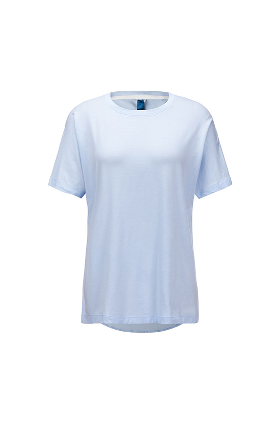 - 기본 루즈핏 티셔츠로 등판의 플레어 패턴 적용으로 여성스러운 디자인.