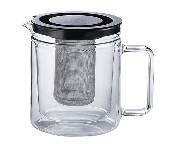 | ダブルウォールタイプのジャグ。熱いものから冷たいものまで万能に使用できます。専用の茶こし付きで、お茶・紅茶なども淹れることができます。 |