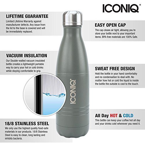 -. Title : ICONIQ Stainless Steel Vacuum Insulated Water Bottle, 17 ounce