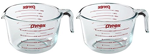Pyrex Prepware 2-Quart Measuring Cup, Clear with Red Measurements (Pack of 2 Cups)