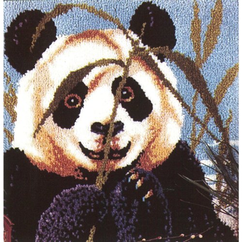 MCG Textiles Item Number 37629 Peeking Panda Latch Hook Rug Kit. Peeking Panda 27x27" latch hook rug kit. Kit comes with easy to follow full color chart, how to instructions, 3.75 mesh rug canvas and pre-cut acrylic yarn.Feature