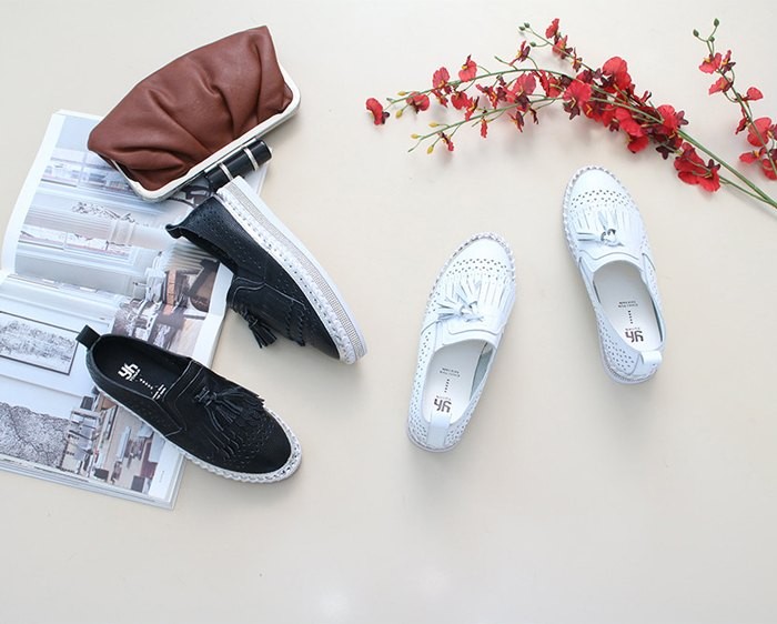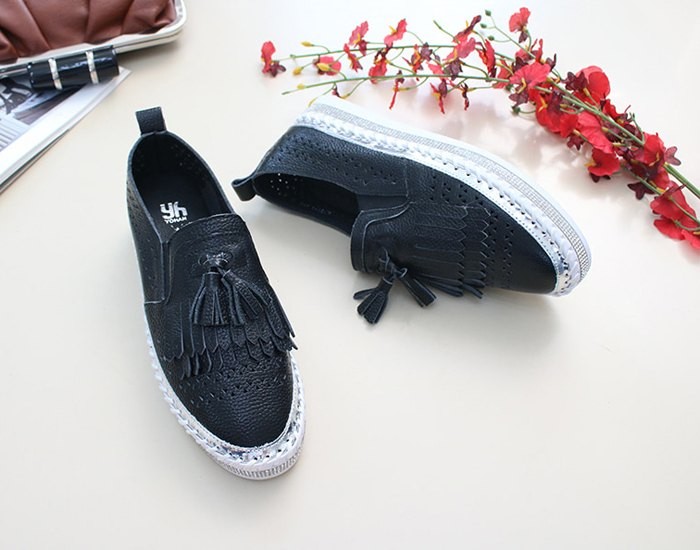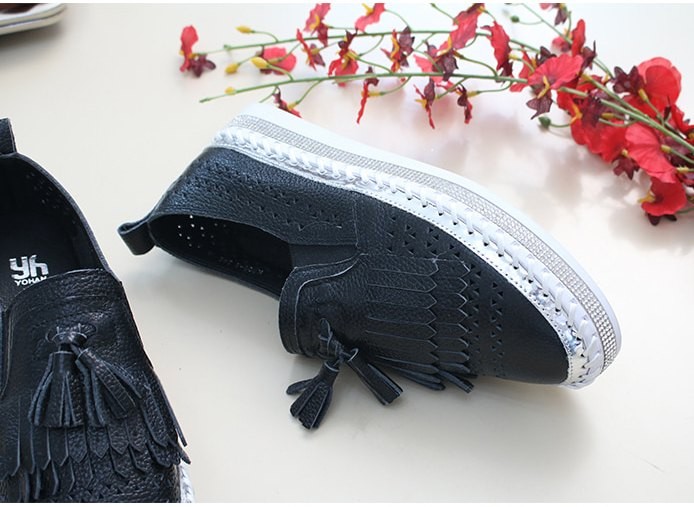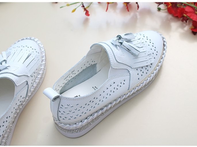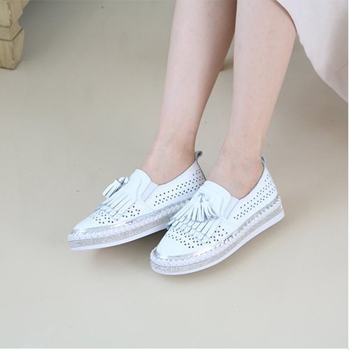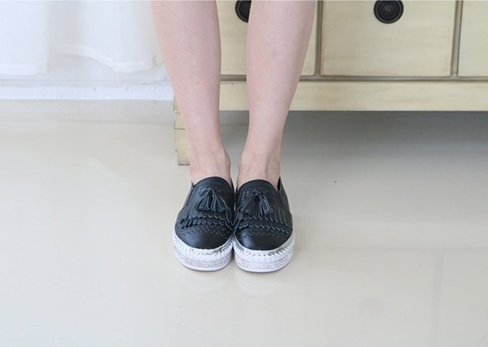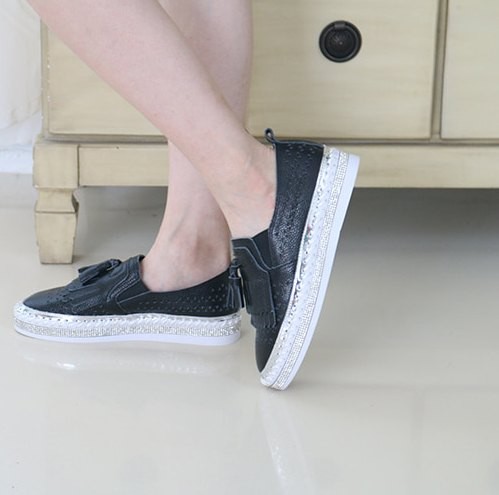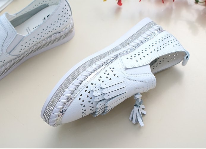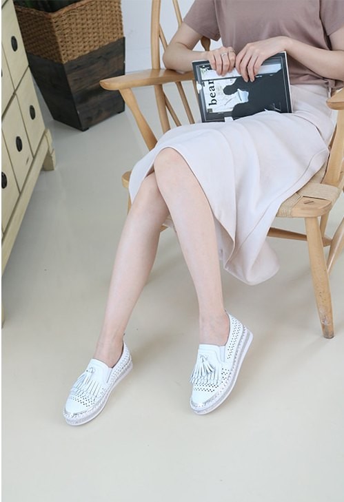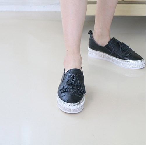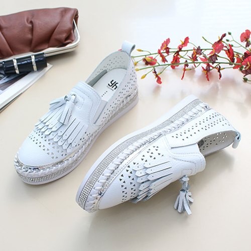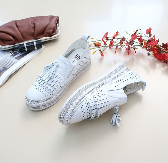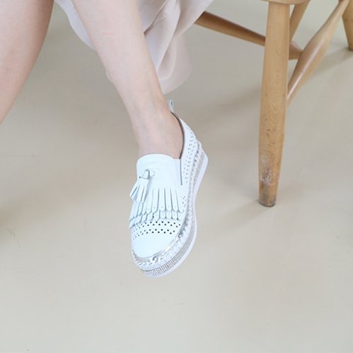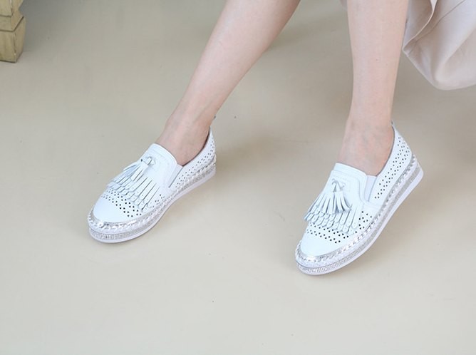 商品名:スリッポン レディース スニーカー フリンジ 本革 レザー 2018 夏 ファッション 靴 婦人靴