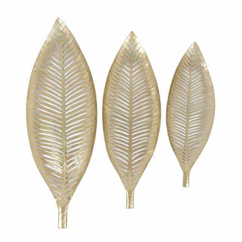 Benzara Glamorous Set of Three Decorative Metal Leaf Trays, Gold