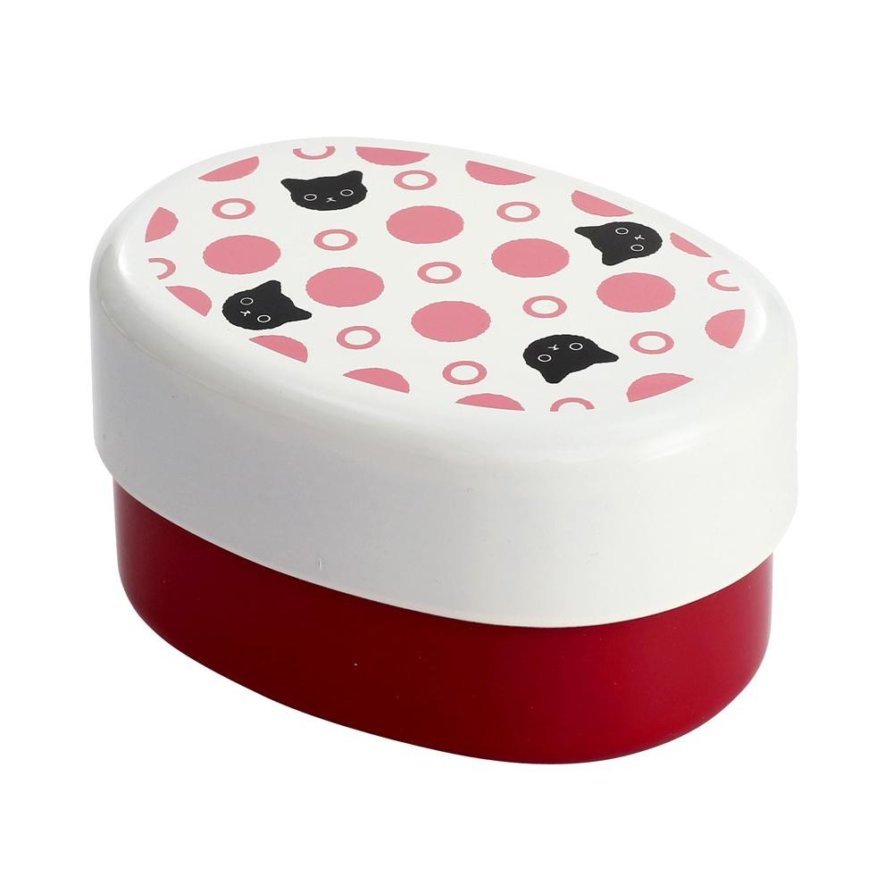 黒猫がアクセントになった水玉模様の弁当箱。