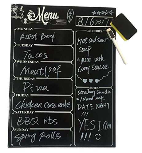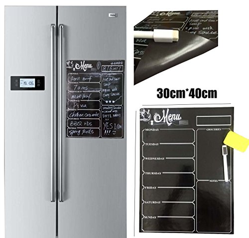 - Our dry erase menu is built on a firm but flexible 11.8" x 15.7" magnetic sheet backing, so that it can be easily attached to any refrigerator door that has a magnetic receptive surface.