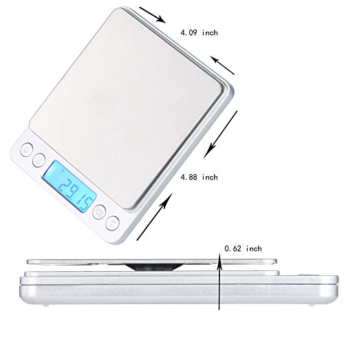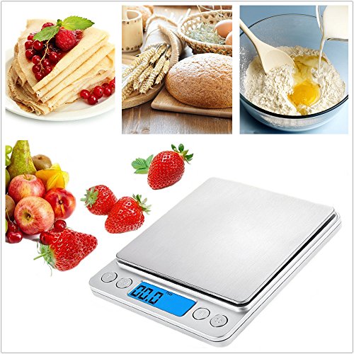 - Digital food scales:The top 3kg/2kg/1kg/0.5kg three kinds Equipped with high precision sensors to provide the most accurate weight readings. Refined accuracy 0.1g / 0.01 oz, up to a weight range of 3000g is strong,fast,accurate,and user-friendly; will work great for any of your mailing,baking, cooking,food, and jewelry needs