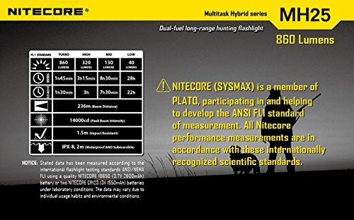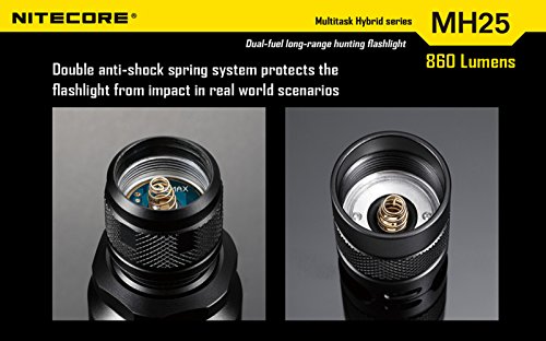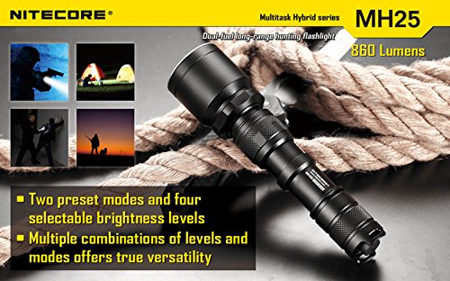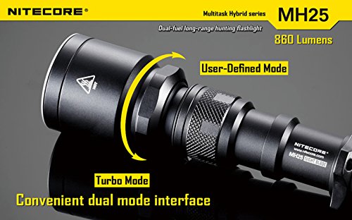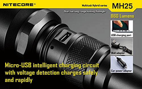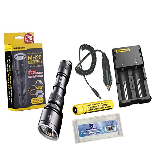 Nitecore MH25 Flashlight Tactical Flashlight CREE XM-L U2 LED Maximum Output 860 Lumens Maximum Runtime 28 Hours Integrated Micro USB Charging Port Anti-rolling Design+Nitecore I2 Charger+Car Charger+Nitecore NL189 3400mAH Battery+Eastshine Battery Box To