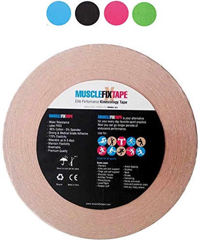 35 mt x 5 cm / 114.8 ft x 2 in KINESIOLOGY RECOVERY UNCUT TAPE ROLL OF PREMIUM QUALITY & ENHANCING PERFORMANCE: Muscle Fix Therapy Tape lifts your skin away from muscles increasing the blood and lymphatic circulation, providing fast and effective pain suppression and relief, joint protection, swelling, fatigue reduction and support for hypotonic muscles, ligament and tendon aches and injuries. Ideal for shoulder, neck, elbow, lower back, knee, ankle and many others. FDA, CE and ISO Certified.
