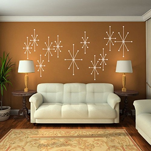 Wall Decal Decor Atomic Starbursts Vinyl Wall Decals Geometric Starburst Mod Mid Century Modern Art Baby Nursery Sticker (X-Large,White)