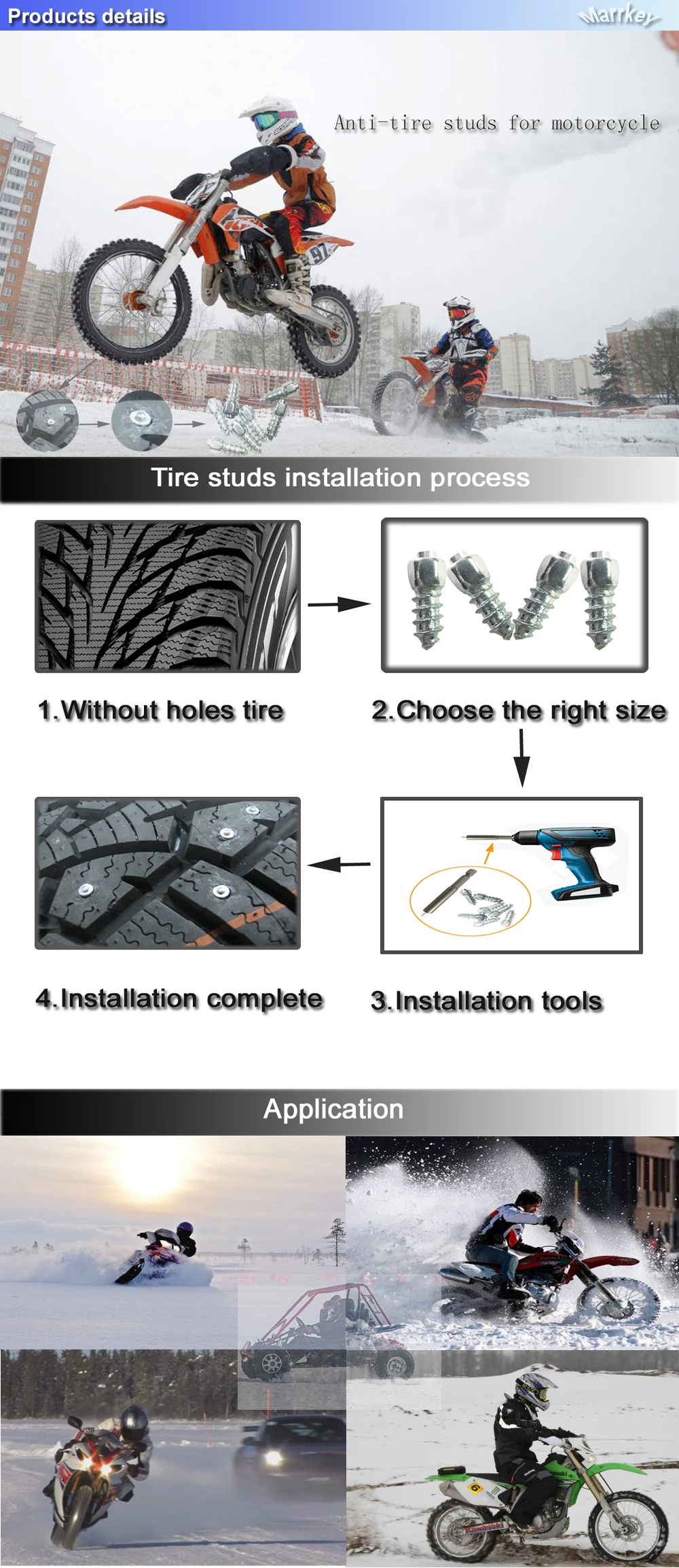 Name:Marrkey 100PCS MS4*12 Professional Tires Studs Screw Snow carbide Spik
