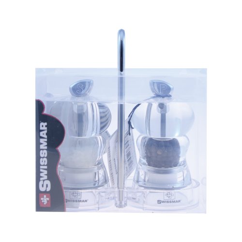 Swissmar Alice You and Me 4-Inch Pepper and Salt Mill Set with Tray, Clear