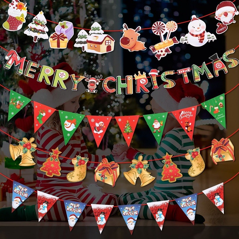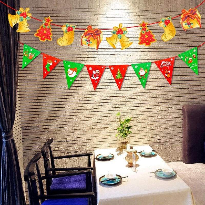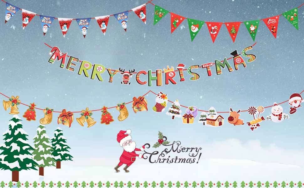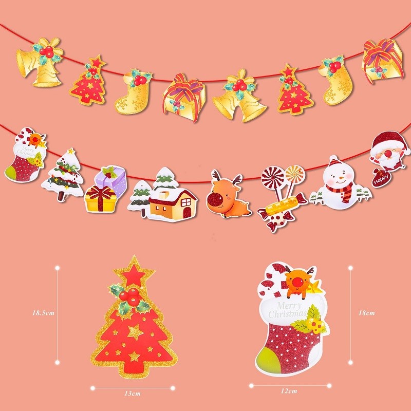 豊富な5種類セット:トナカイ+MERRY CHRISTMAS+旗+鈴+旗 クリスマスガーランド合計5種類クリスマス飾り:雰囲気を盛り上げ、クリスマスの面白さを楽しめます。子どもと一緒に楽しくデコレーションできます!使い方色々、おしゃれで可愛いインテリアです。掛けやすい:吊って簡単で便利です。また、簡単に取り外しができるので、気分によっても変えられるのも魅力的なポイント!雰囲気満点:糸で繋がって長さが調節可能です。旗を壁に掛けるだけでクリスマスの雰囲気がいっぱいです。 適用場所:自宅はもちろん、パーティー会場や店舗などの屋内の壁飾りや、ショーウィンドウ、商品陳列フラッグなどに、持ち運んで吊り下げるだけで気軽に装飾できます♪