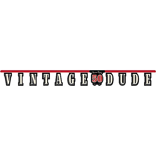 -. Feature : Coordinating Vintage Dude 50th Birthday Party Decoration Bundle Includes - / (1) Jointed Banner measuring 7"x 5.5' featuring Red/Black "Aged 50 Years Vintage Dude" Design / (1) Honeycomb Centerpiece measuring 12"x 12" featuring Red/Black "Aged 50 Years Vintage Dude" Design / (1) 18" Metallic Balloon featuring Red/Black "Aged 50 Years Vintage Dude" Design / (1) Package of 15 Classic Red 12" Latex Balloons, (1) Package of 15 Velvet Black 12" Balloons and 500 yds of Black Curling Ribbon