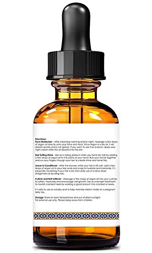 Cold Pressed Virgin Unrefined Moroccan Argan Oil, Rich In Essential Fatty Acids, Quick Absorption Rate, Ideal For Dry, Damaged And Wrinkled Skin, Improve Skin Elasticity and Supports Cell Regeneration, For Dry Skin, Hair, Face, Stretch Marks, Fine Lines, Eczema, Acne Scars