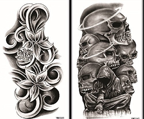 GGSELL GGSELL waterproof and non toxic temporary tattoos 2pcs Halloween temporary tattoos in one package, it including skulls and flowers