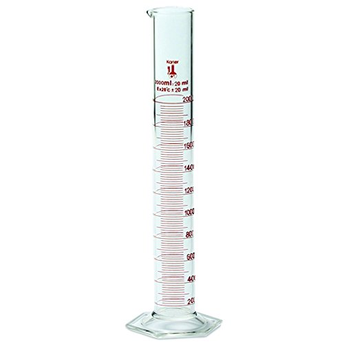 2000ml Graduated Cylinder, Borosilicate 3.3 Glass, Single Metric Scale, Karter Scientific