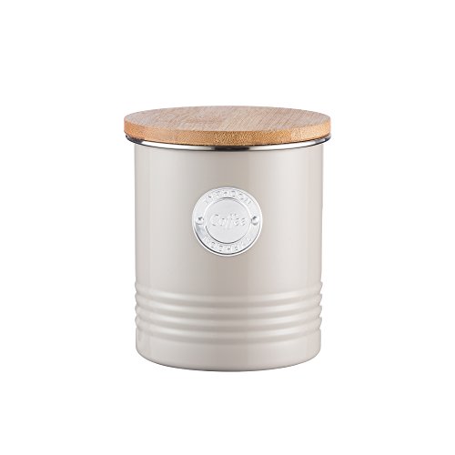 Typhoon Living Carbon Steel Coffee Canister with Bamboo Lid, 33-3/4-Fluid Ounces, Putty