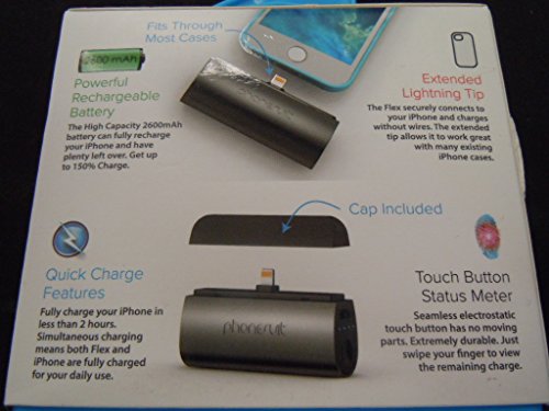 Flex's custom High density lithium-ion 2600 mAh Battery cell joined with an advanced chip set & electronics can more than fully charge your iPhone 5/5S and iPhone 5C.