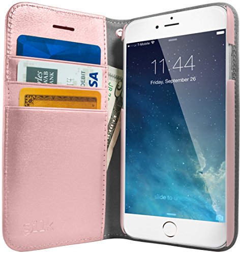 -. Feature : Folio Wallet Case for iPhone 7 - Separate pockets for 3 cards (credit cards, IDs, etc.) plus full sized stash for your cash / Protect Your Device - 360 degree full framed folio style protection and elastic security band ensure your iPhone is safe at all times / Integrated Easy Fold Kickstand - Convenient hands-free viewing for movies on the go / Made of Premium Materials - Subtle soft-touch felt & synthetic leather design with effortless button and port accessibility / Free Screen Protector and Wrist Strap - Includes crystal clear scratch-resistant screen protector and detachable wrist strap