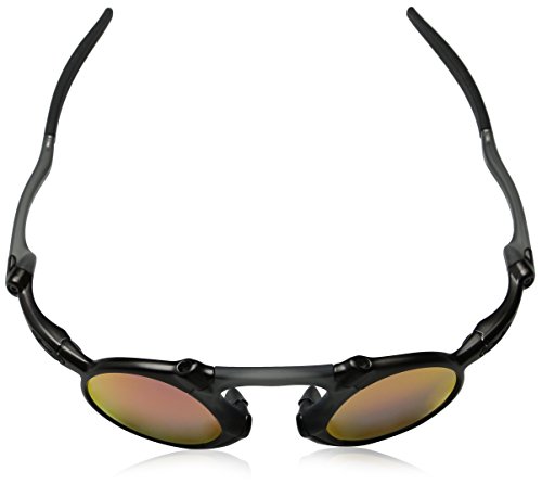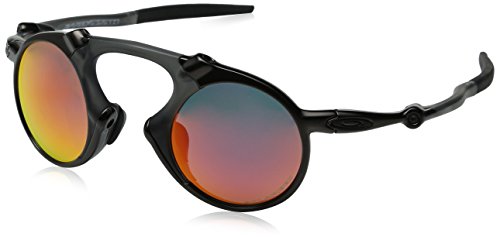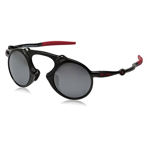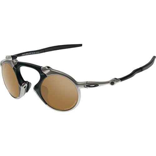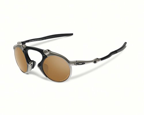 Studio : Oakley Sunglasses (Oakley, Inc.) Publisher : Oakley Sunglasses (Oakley, Inc.) Binding : Apparel Product Description The Oakley Madman is a bold and aggressive frame combining hi-modulus diecast aluminum with O Matter to allow for flex. Inspired by previous X-metal collections with similr design language a familar feel up a totally unique look. Never one to give up functionality in the name of looks, this frame still sports 3 point fit to keep the polarized lenses in precise optical alignment, and Unobtainium earsocks and nosepads for a secure, snug fit.Patented XYZ optics for maximum clarity at all angles of vision.Plutonite lens material filters 100%UV (ABC) and harmful blue light up to 400nm.Fits Medium to Large faces.Includes hard case. 0