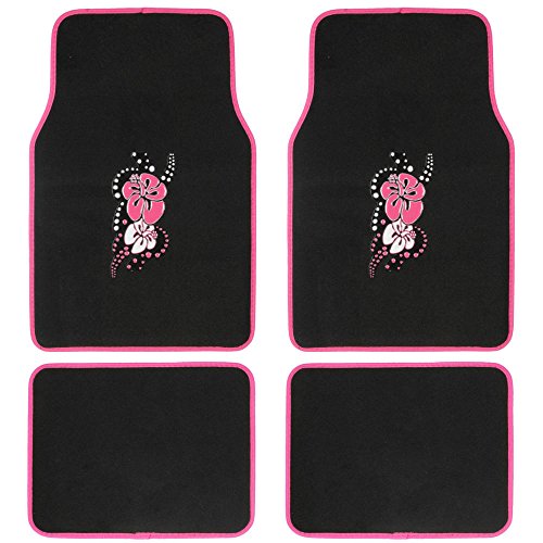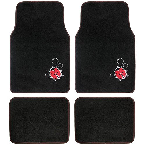 BDK Universal Fit 4-Piece Design Carpet Floor Mat Set - (Love Heel) (Licensed Products, Secure Backing)