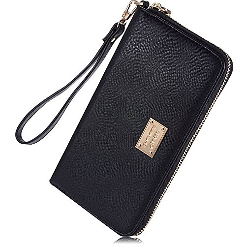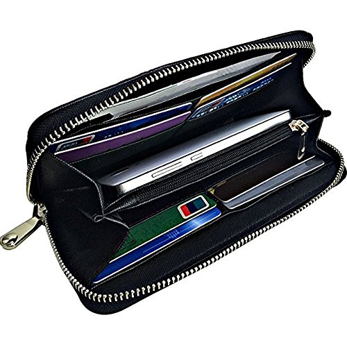 -. Feature : A Luxury Wallet: Made from top grained cowhide leather with carbon fiber texture, this Calsoling womens clutch has the unparalleled attractiveness when you take a close look and have a touch on its surface. / A Functional Wallet: 2 ticket slots on the side; 8 card slots; 2 large functional slots for mobiles and other bigger size items ( iPhone 7S fits ); 1 zippered pocket for cash and coins; a wriststrap is also included for the convenience of daily use. / A RFID Blocking Wallet: A layer of silver embroidered lining surrounds the entire wallet when the wallet is zipped, providing comprehensive protection to the vital information in your ID card, credit/debit card and driver license. / It is quite convenient for you to go shipping or hanging around on the street or enjoying a cup of coffee in the cafe. / A Perfect Gift Idea: This wallet makes a great gift idea for her, make it be birthday, anniversary, Christmas or any other occasion when a gift is needed.