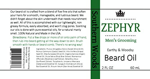-. Title : Zephyr Men's Grooming - Southern Woods Beard Oil - Cedarwood + Clove + Anise - 2 Oz