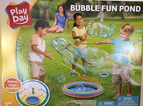 -. Binding : Toy -. Brand : Play Day -. EAN : 0076666174614 -. Feature : Three Colorful Bubble Wands / InFlatable Pond / and Bubble Solution -. IsAdultProduct : 0 -. Label : Play Day -. Manufacturer : Play Day -. MPN : LYSB01DR1L7FA-TOYS -. PackageQuantity : 1 -. PartNumber : LYSB01DR1L7FA-TOYS -. ProductGroup : Toy -. ProductTypeName : TOYS_AND_GAMES -. Publisher : Play Day -. Studio : Play Day -. Title : Bubble Fun Pond Outdoor Fun -. UPC : 076666174614