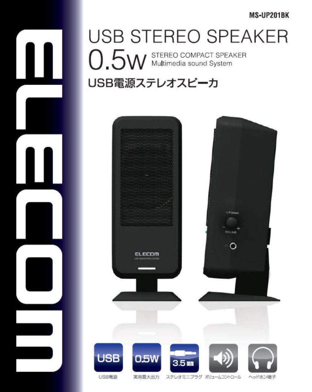 Elecom MS-UP201BK 0.5W USB Powered Speaker (Black)