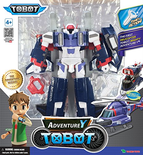 TOBOT Adventure Y has strong air-borne attack skill! The first helicopter Tobot. Kory's Tobot! Detachable propellers! Landing skis ensure safe landing! Auto blades spins without batteries. Puzzle-like transformation! Tokey Holder included to store Tokey.Feature
