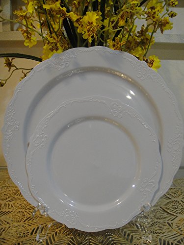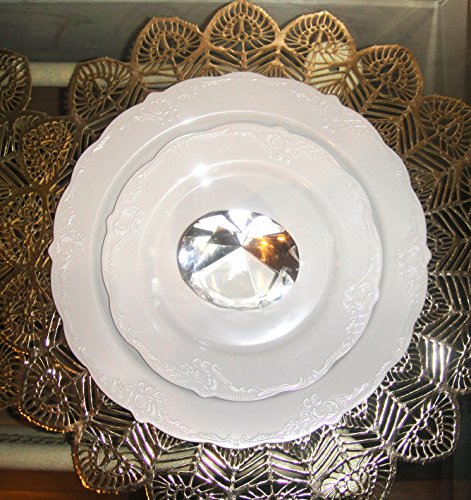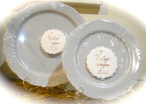 Silver Spoons 20 Pack, Vintage Disposable Plastic Round Plates (10 Dinner -10" + 10 Salad -7.5") (Gray)
