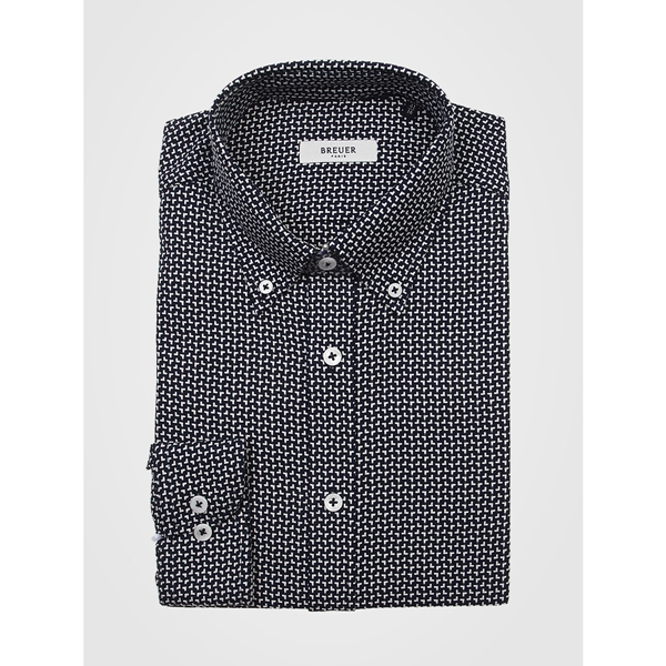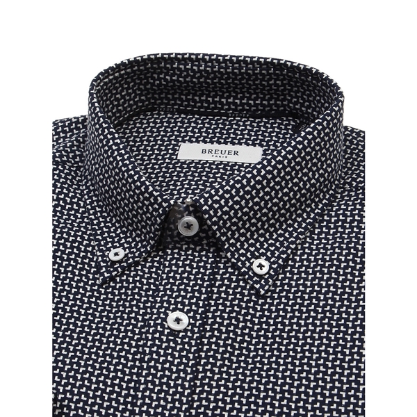 브로이어 블루 조직감 있는 자카드 패턴의 버튼다운 스타일로