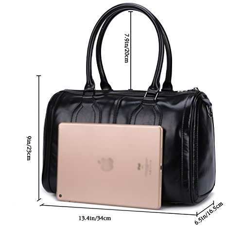 -. Feature : Material: Advanced and P.R.Ime waxed leather (Genuine Leather),come with Gun color custom antioxygenic hardware, sturdily constructed with detailed streamlined stitching and durable and smooth fabric lining. Waterproof, wear resistant and durable in use. / Strap: Double handle(7.9 in, Long enough to put on shoulder) with a removable and adjustable long shoulder strap. Convenient & Comfortable to wear in 3 ways: Tote, Shoulder and Cross Body. / Features: Hand made by professional artisans. Smooth zippered closure. With 1 big inner compartment, 1 interlayer zipper bag,1 interior zipper slot pocket, 2 open pockets for smartphone, credential and cards. The bottom of bag has five textured metal five which is effective for protection against wear. / Capacity :Easily carry your IPAD Pro or tablet, Iphone7 plus, Kindle, notebook, wallets, key, umbrella, ID card, driving licence,Checkbook, makeups and other daily thing with you. Perfect leather handbags for work or travel. / Dimensions: (L*H*W)13.4"*9"*6.5" inch / 34*23*16.5 cm , the weight is about: 2.9 pounds.