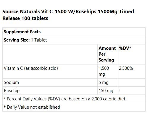 Source Naturals Vitamin C-1500 with Rosehips 1500mg Time Release, Supports Immune System , 100 ...