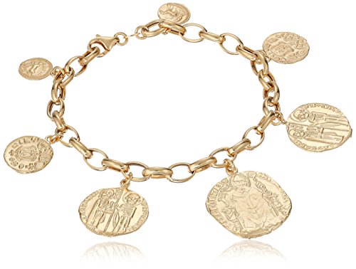 -. Title : Sterling Silver Yellow Tone Italian Replica Coin Link Charm Bracelet, 7.5"