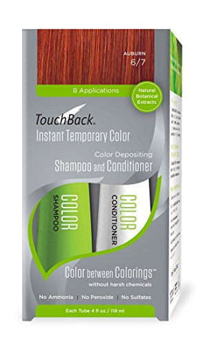 TouchBack Color Depositing Shampoo and Color Depositing Conditioner add back color and shine to faded hair, without the harsh chemicals of permanent hair color - no ammonia, peroxide or sulfates. It's the safe, gentle way to add vibrant color any time. The color lasts through three ordinary washings. A breakthrough in temporary hair color technology, TouchBack's patented formula uses the natural ionization of the hair to seamlessly bond color to the hair shaft. For those weeks between permanent colorings, boost your hair color and amp up your shine when you shampoo and condition.Feature