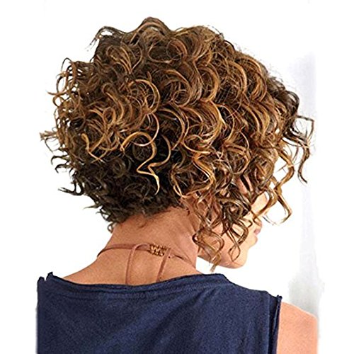 YOURWIGS Short Curly Hair Wigs for Black Women Kinky Synthetic Wig Natural Cut Wigs with Wig Cap Z068
