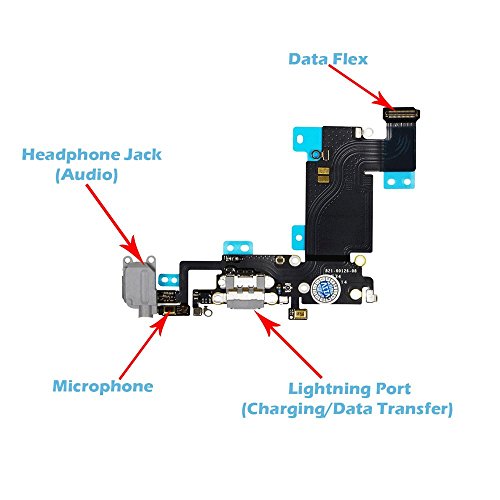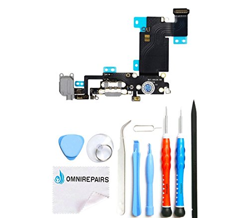 Omnirepairs-For Gray iPhone 6s Plus 5.5'' A1634, A1687, A1699 Charging USB Lightning Port Flex Cable + Microphone + Headphone Audio Jack Replacement Assembly + Tools (Gray)