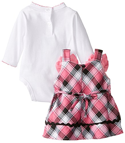 2 Piece set, plaid jumper with cat applique & knit bodysuit