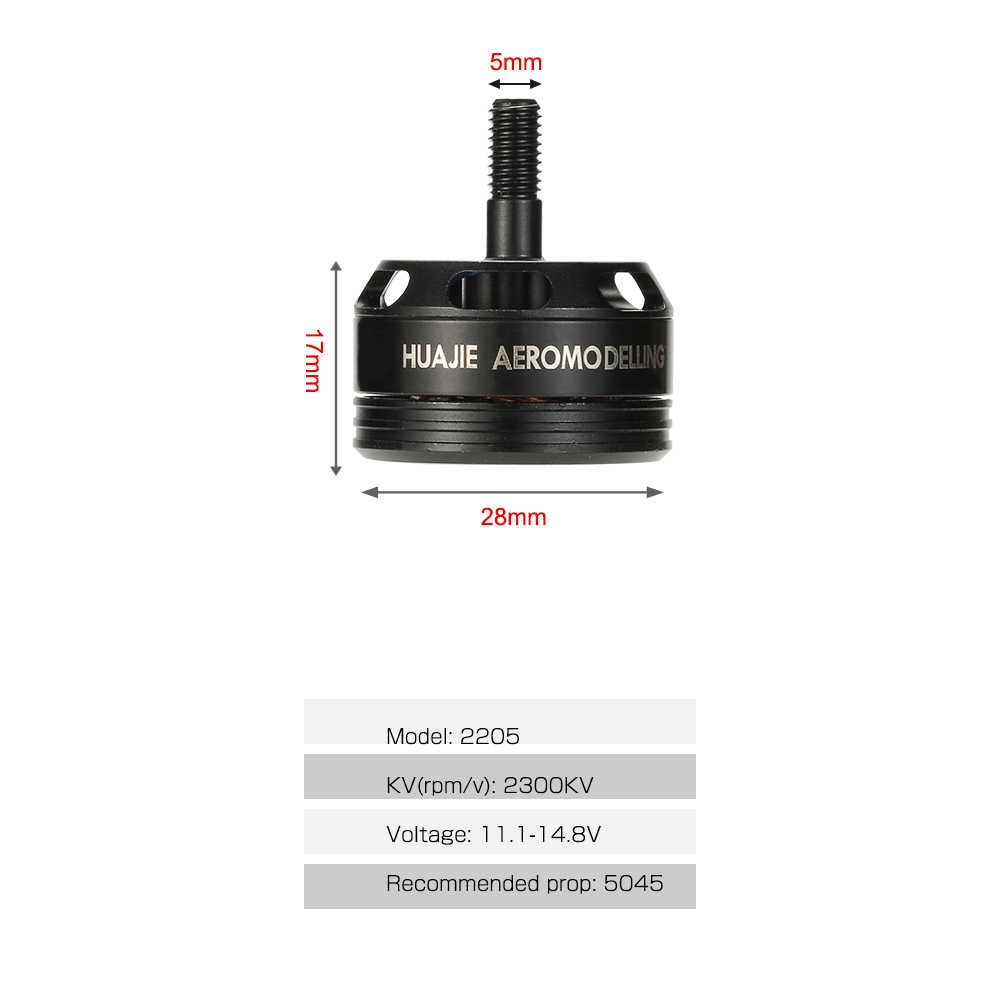 2205 2300KV brushless motor are born for FPV racing, crazy about speed. Enjoy fast & furious flying.